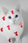 Okay then. Can you make me an avvie that says Music on it and a picture of a white she-cat with blue eyes and red markings on her pelt that look like musical notes?