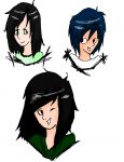 ( ( If so, can I have a human female with black hair (side bangs sweeping to the left), dark brown eyes, a green v-neck t-shirt, dark blue skinny jeans, and Pink converse? ) )