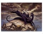 Gender:male Appearance:he has dark purple scales with a gold under belly that starts from his chin to the tip of his tail.has paws not fingers. wings are a transparent purple. has a blade on the tip of his tail. eye color is blue and has a black stripe on his face