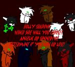 Holly stood with the group, wanting to get some explanations. "Er... first, if you guys want to know, the Sinners attacked me and tried to get me to tell them what we'e doing. So Cloudandis was right when she said they might be planning something. I didn't tell them anything, but they might do this to someone else, and I don't want that to happen. Second, what's going on with Cloudandis? And third, like she said, we're just bringing you along, and won't use you."He asked them. His expression softened when he looked at the Sinner. Mabe this guy wasn't so bad at all. He then looke to the pack Alpha and Ruba. "So you told him about it?"he asked Ruba in a quiet tone. "Why is everyone, especially the alpha, beta, and Ruba on edge? What's going on that we don't know about?"he asked them, his eyes darkening. Unlike Cloudandis, he could feel fea, hatred, compassion, and anger. And right now he had amixture of anger and fear.